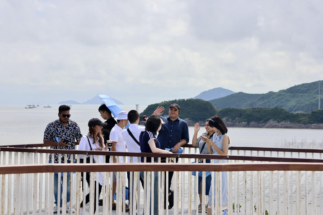 蔚蓝天空下,位于路桥金清镇的台州市青年艺术海岸乐声飘扬,来自阿根廷的罗德里戈·阿尔瓦雷和妻子倚靠在栏杆旁,吹着海风静静感受惬意时光。9月26日,台州市海外传播官第三次交流活动在金清镇举办,十余名台州市海外传播官通过沉浸式文化体验,架起中外文明对话的桥梁。