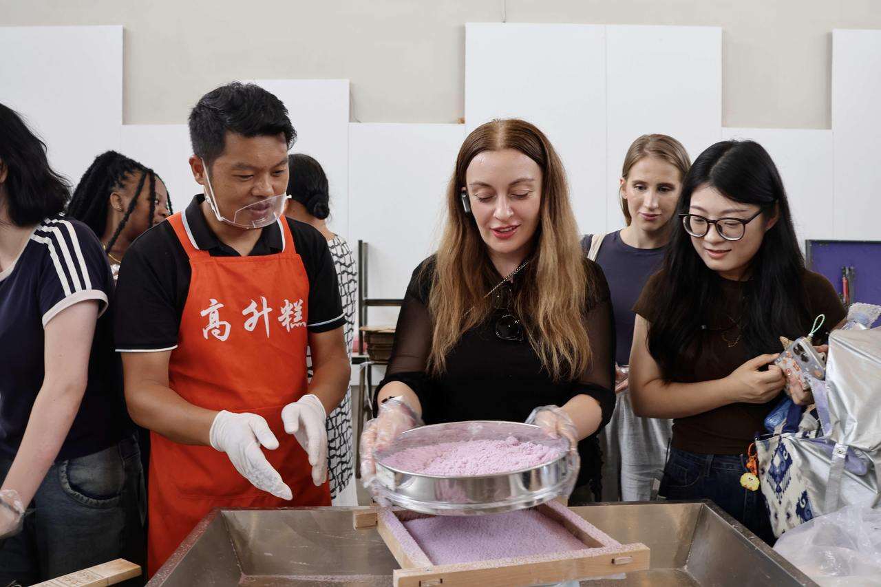 指尖跳跃间,一根根草绳被编制成精致工艺品;蒸腾热气中,象征着“步步高升”美好祝愿的高升糕新鲜出炉……在非遗传承人的指导下,国际友人亲手体验代表性非遗草编和非遗美食的制作。来自伊朗的汉娜成功编好了一颗星星挂件,兴奋地和好朋友展示:“这是我第一次参加这样的活动,无论是风景美丽的青年艺术海岸还是草编,都是特别美好而神奇的体验。”