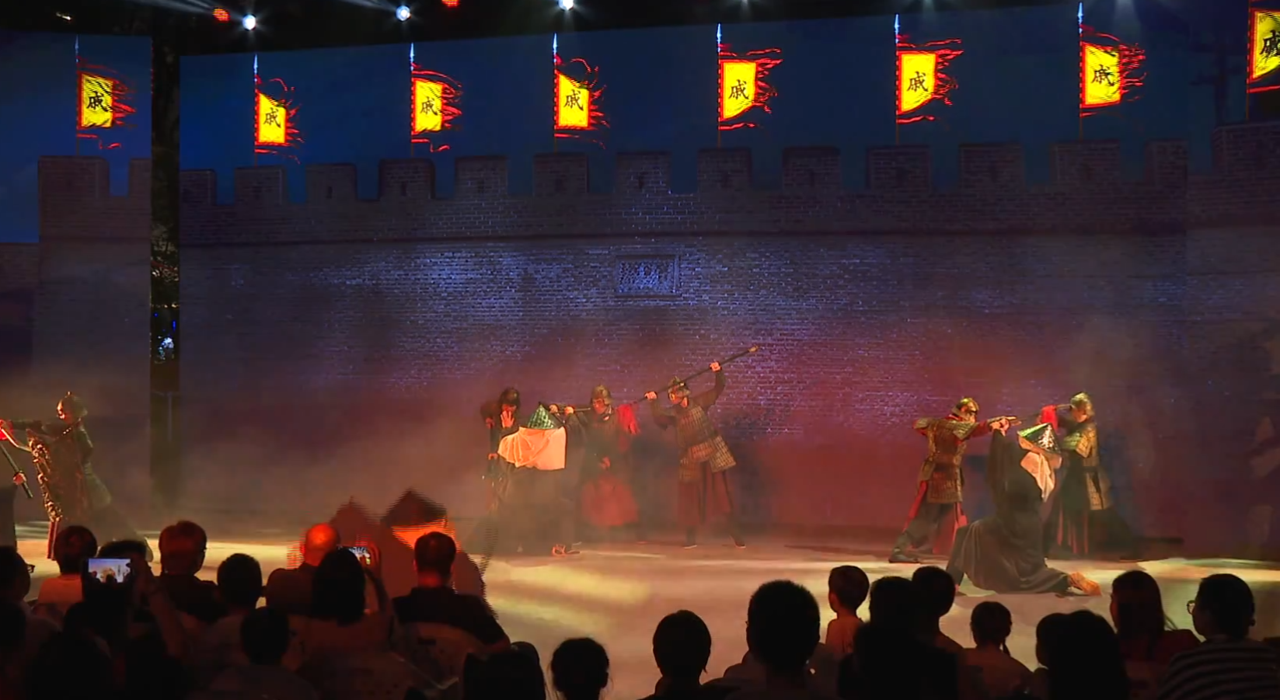 夜幕降临,葭沚老街光影点亮,表演拉开帷幕,葭沚的历史文化悄然展开其幻妙的书卷:李盛华在梦中多次穿越到不同年代的葭沚,从三国到民国,从激昂壮阔的海上征途到同仇敌忾的抗倭战争,从啼笑皆非的乌龙闹剧到感人至深的“爷孙重逢”,先后邂逅卫温、李白、戚继光、黄楚卿、宣侠父……历史、人文、情感的时间线,在李盛华穿越之梦中反复折叠、碰撞。