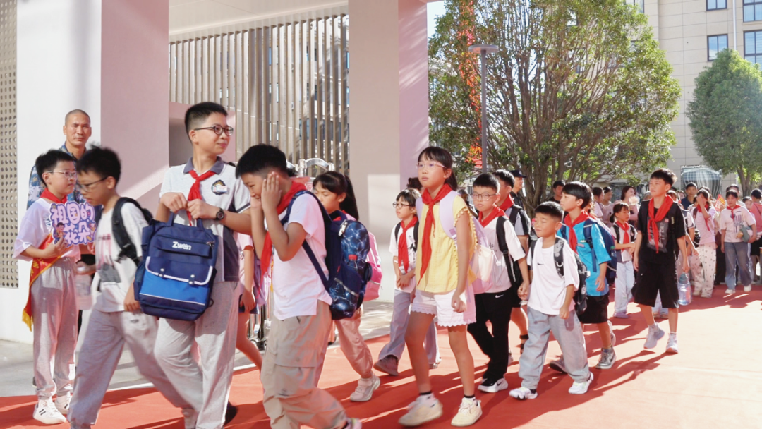 清晨的阳光洒在椒江鸿洲小学的门口,孩子们背着书包蹦蹦跳跳跑进校门,几位家长正笑着讨论:“以前总愁没好学校,现在家门口这所新学校,操场大、老师好,孩子每天都盼着上学!”