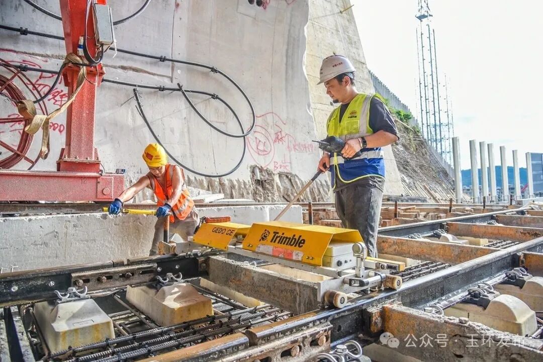 “目前共开设五个工作面,包括道床板施工、底座板施工和道岔施工等,投入工人200余名。国庆期间所有班组照常作业,每个工作面都会正常施工。”现场副经理孔晨阳表示,无砟轨道施工精度要求极高,轨道板精调误差需控制在0.1毫米级,为此工人们必须全神贯注,确保每一道工序都符合高标准要求。