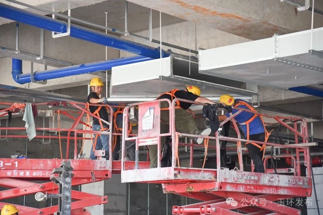 中铁十四局玉环站前广场主体现场负责人杨霖介绍,汽车库主体已全部交验完成并进入装饰装修阶段,目前,两个装修班组同时作业,国庆期间每天投入约300人抓紧抢进度。