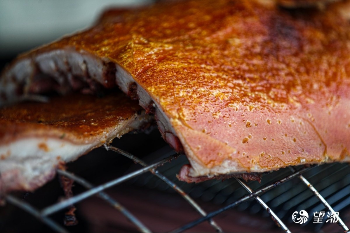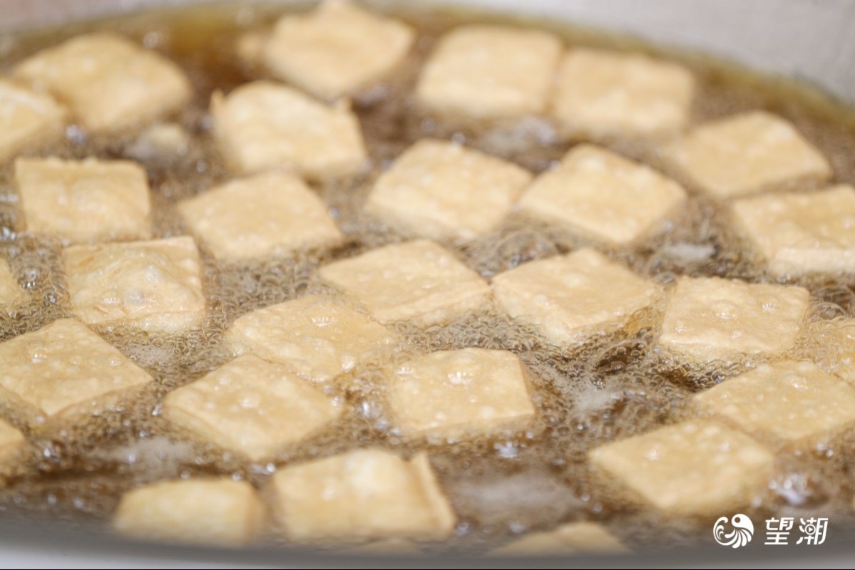 台州小吃大杂烩展位堪称本土风味的浓缩展台,大骨熬制的汤底咕嘟作响,将豆包、豆干、小肠卷、牛筋、牛肚等食材浸润得香气浓郁。豆腐泡吸饱汤汁,弹牙的牛筋与爽脆的牛肚在口中碰撞,每一口都是台州人记忆里的味道。此外,杨厨宴油光锃亮的脆皮乳鸽、海之家鲜嫩多汁的白切鸡、玉环酥呈记咸香酥脆的非遗油索,以及白水洋豆腐外酥里嫩的油炸豆腐,共同构成了这场味觉盛宴的丰富层次,让这份烟火气持续扩散。