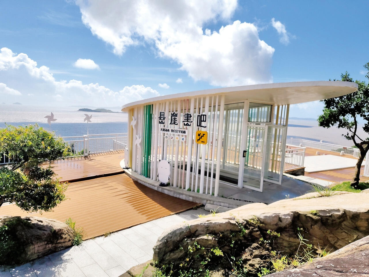 新型阅读空间的触角也延伸到了海岛景区。在大陈岛的甲午岩景区,观澜台海景书吧由休息驿站改造而来,目前是一处集观景、阅读、休憩、文化体验于一体的新型阅读空间,不定期举办具有海岛特色的贝壳花画相框、贝壳罩灯等手工活动。