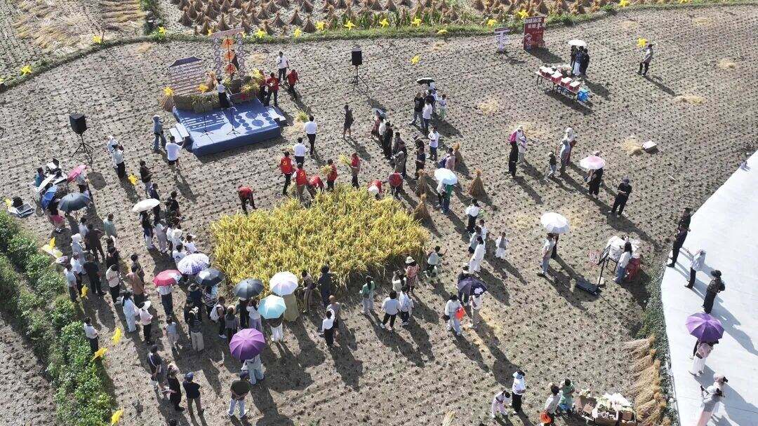金风送爽,稻浪飘香。10月12日上午,在天台县泳溪乡北山村的鎏金梯田,一场简单而充满田间野趣的泳溪香米庆丰收活动火热进行。泳溪乡历来都重视传承弘扬农耕文化,今年已经是第15个年头。本次活动,以农民为主角,节俭办活动,礼赞丰收、致敬耕耘。300多名来自各行政村的农民朋友们、新泳溪人和全国各地的游客欢聚一堂,在稻香四溢的梯田间共庆丰收佳节。