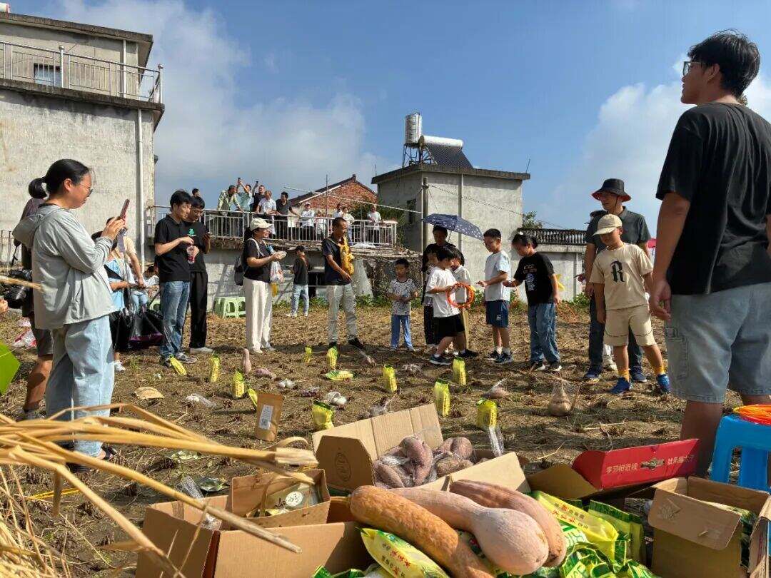 开镰仪式结束后,稻田里的活动区沸腾起来。“套个特产”小游戏现场欢声笑语不断,泳溪香米、大志茶叶、天黄一号黄精、覆盆子干等泳溪优质特色农产品整齐排列,成为广大套圈游戏玩家们竞相追逐的“香饽饽”。来自天台县赤城小学的杨同学幸运地套中了“大奖”,赢得现场一片欢呼,他兴奋地表示:“现场这么多小朋友,我能套中一盒黄精真是意外之喜,奖品不重要,重要的是能一起分享丰收喜悦!”