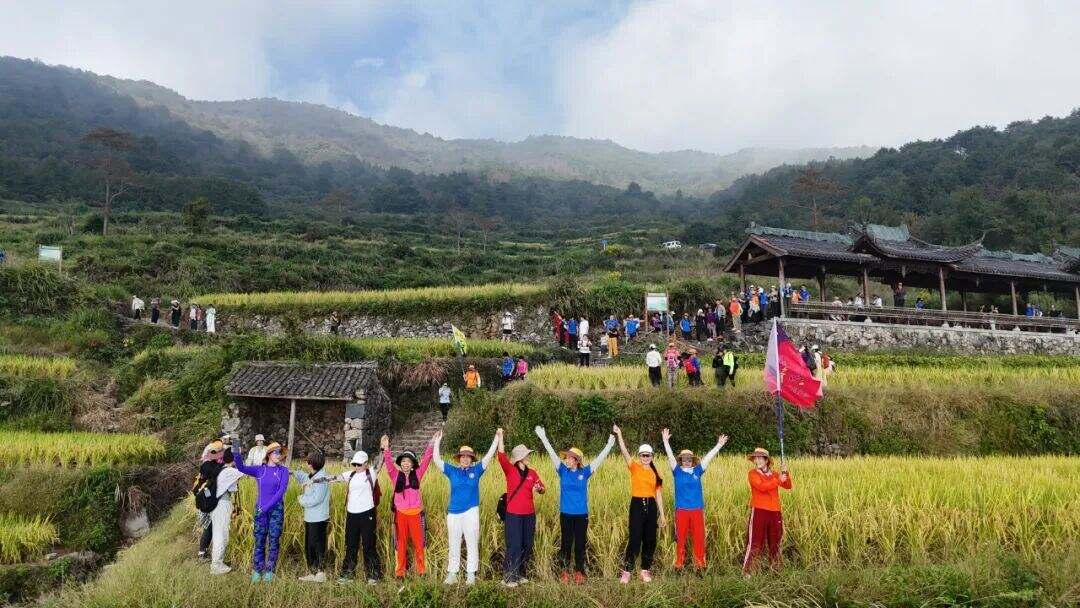 “阅尽满眼秋色,最是人间值得。”金色的稻浪在微风中摇曳,空气中弥漫着泳溪香米的甜香。广大游客和徒步爱好者们沿着泳溪鎏金梯田拾级而上,在运动中沉浸式体验户外秋日的美好。游客们纷纷走进稻田打卡拍照,记录下难忘的丰收盛景。来自上海的徒步登山爱好者张女士感慨:“泳溪稻浪飘香,山清水秀,很高兴来到鎏金梯田,在登山徒步运动中分享泳溪香米丰收的秋日喜悦。”