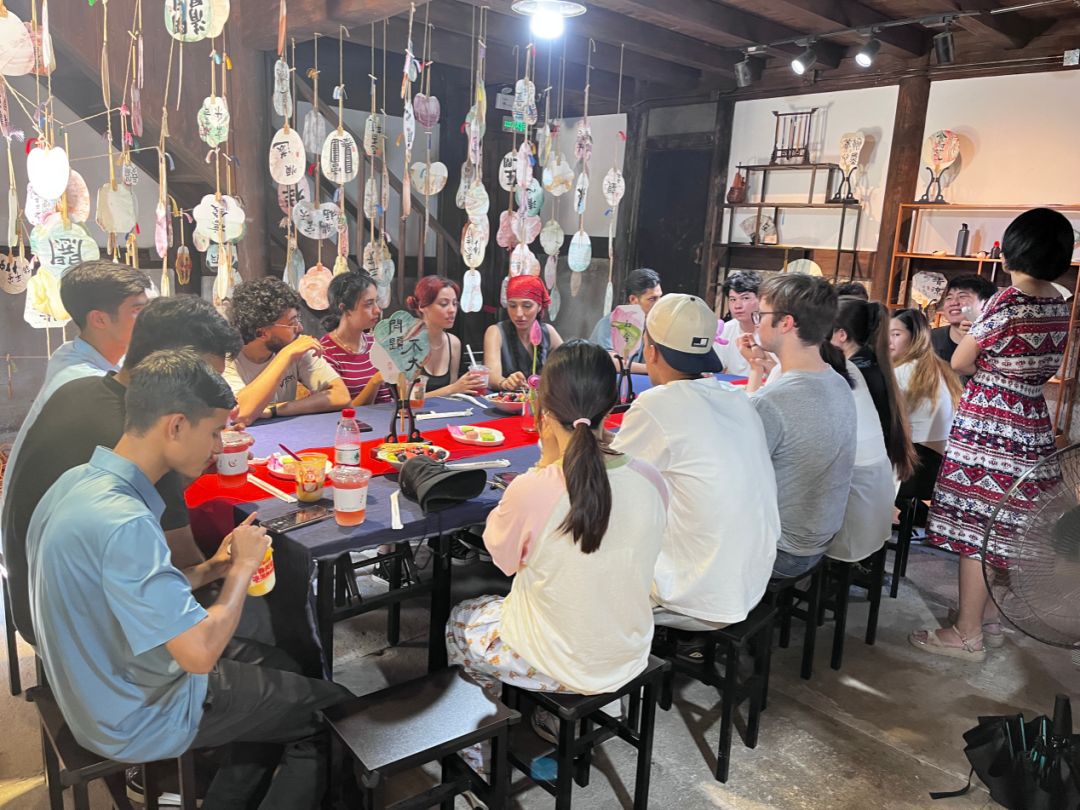 “请进来”开展文化交流互鉴。近年来,“和合研学”热度持续升温,除了全国各地的“研学团”,来自世界各地的留学生也纷纷来到天台,感受和合文化的魅力。据统计,2024年,天台县接待研学团队及游客近2万人次。他们走进国清寺、和合人间文化园,体验茶道、书法、武术等传统文化,在实践中感受“和合”理念的内涵。摩洛哥的留学生Wissal说:“天台有着悠久的历史文化,有太多值得年轻人去学习、探索和尝试的东西。”