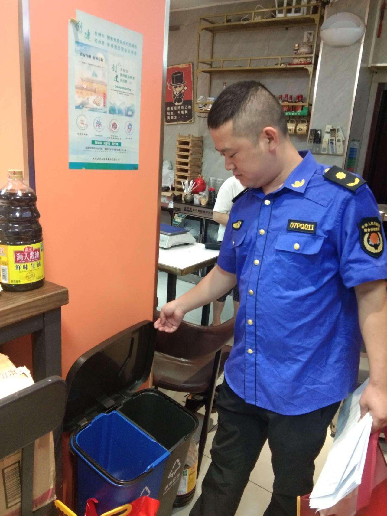 执法人员通过“进店铺、进商超、进小区”全覆盖开展辖区内的垃圾分类专项检查行动。开展包括垃圾分类标志的完整性、垃圾分类收集点的合规设置以及垃圾是否正确分类投放等多环节审查。