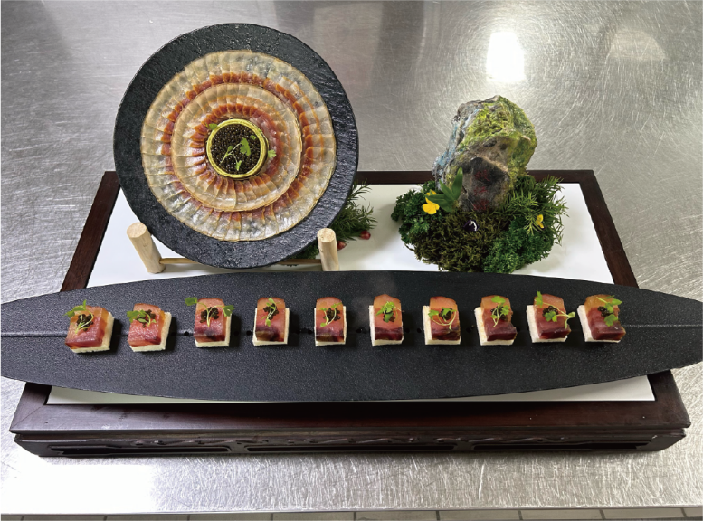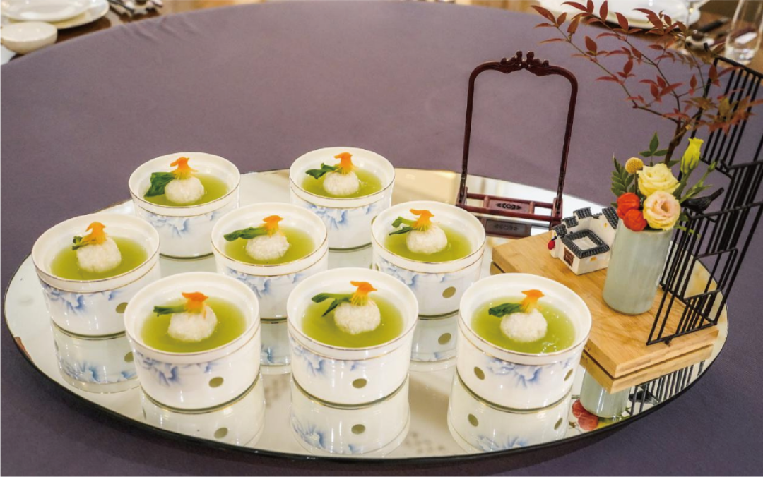 花港观鱼、大红袍萝卜干酿翅、山珍浓汤烩黄鱼、海味酿福袋、鱼羊珍珠丸、永嘉黄牛骨、冬茸藏鲜宴球、吉祥浔河鲜、毛狗线粉烧甲鱼、黑松露金蒜烧鳗鲡、金椒虾汤浸笋壳斑、素官燕蟹肉橙、山珍舜芋、藕遇繁花、常山丰收大团圆、金风玉露、嵊泗蟹松......