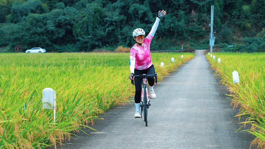 这次骑行的路线特意选在章安稻田核心区域的乡间小道——道路两旁是一望无际的稻田,耳边是风吹稻浪的“沙沙”声和偶尔掠过的鸟鸣,脚下是平坦舒适的乡村绿道。骑行途中无需刻意寻找角度,随便按下快门,都是“人在画中游”的秋日氛围感大片,无论是发朋友圈还是记录生活,都足够惊艳。