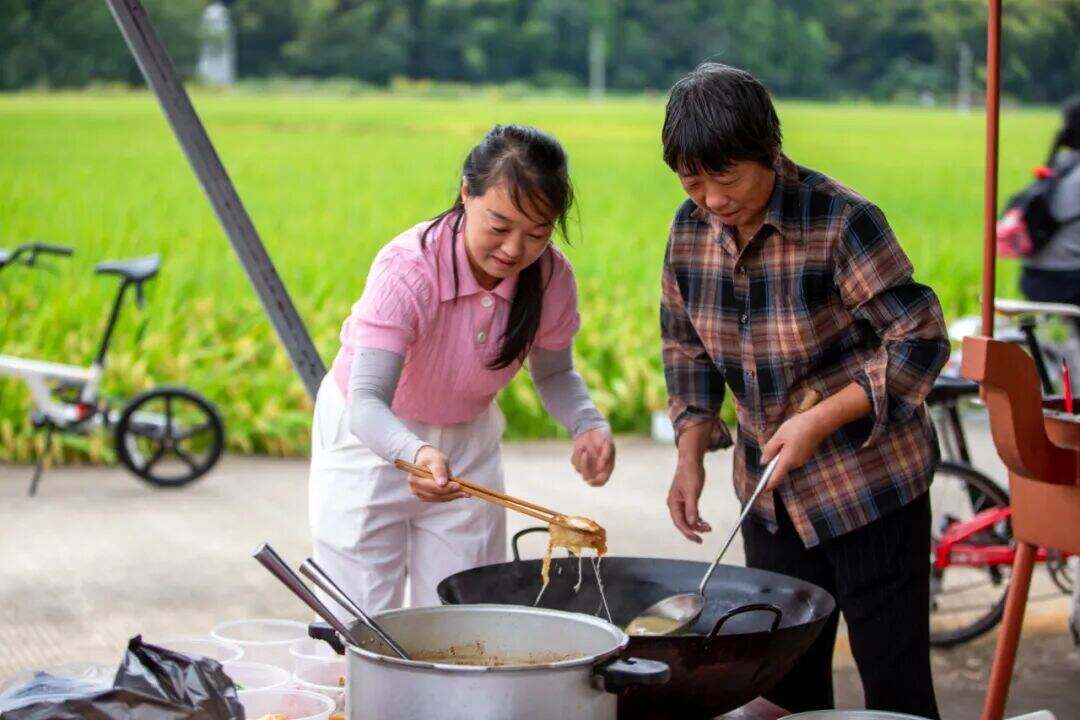 骑行结束后,章安街道为每位骑行者准备了章安特色补给:有空气生姜糖,甜香中带着姜的清爽;还有一碗热腾腾的姜汤面,暖胃又暖心。这些美味的核心食材,正是章安本地名产—— 谢杨贡姜,从零食到主食,满满都是椒江章安的本土风味。让大家在享受骑行乐趣的同时,多了一层独属于章安的“舌尖记忆”。