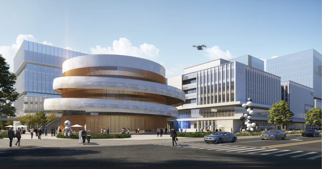 区别于一期研发中心、孵化加速中心、生产车间及配套商业设施的建设规划,三期主要建设小试中试车间、研发中心、共享会议室、共享食堂等。在功能区块布局上,三期又和二期统筹,打造园区“聚芯广场”,形成交互中庭,产品展示和技术交流广场,为企业提供更多的资源共享和孵化加速空间。并配套展示厅,作为产业孵化园区的文化宣传中心。