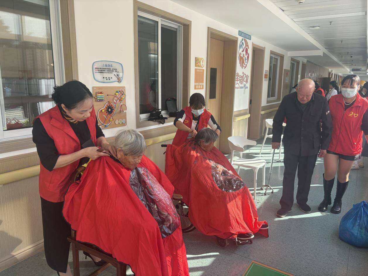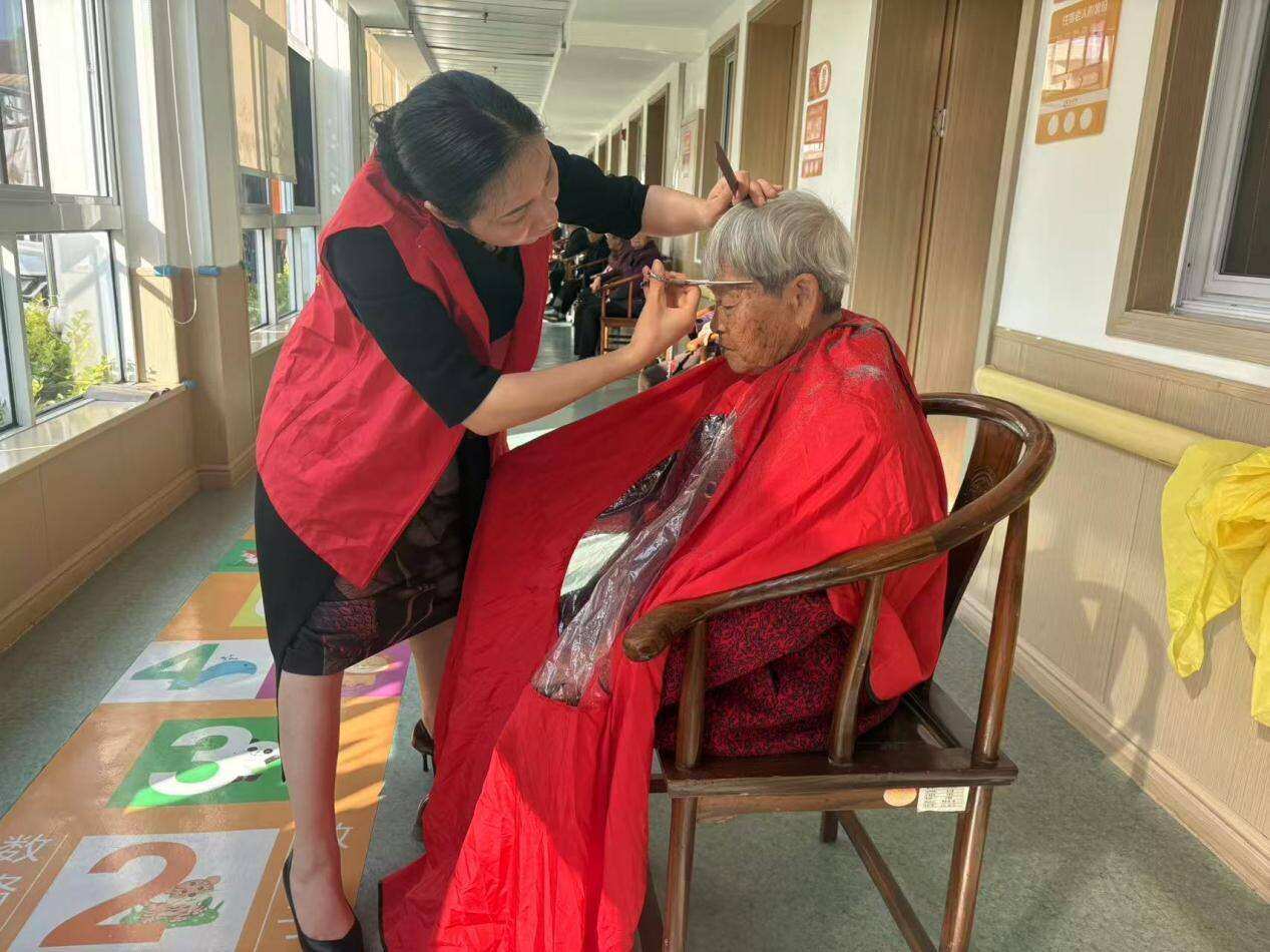 在朗高养老服务中心,金清镇青年志愿者们早早备好理发工具,为老人们开展义剪服务。志愿者们手持理发工具,细心为老人修剪头发;同时还耐心地为老人修剪指甲。他们用娴熟的技艺和贴心的服务,让老人们在节日里感受到温暖与关怀,以实际行动传承敬老爱老的传统美德,为重阳节增添了浓浓的温情。