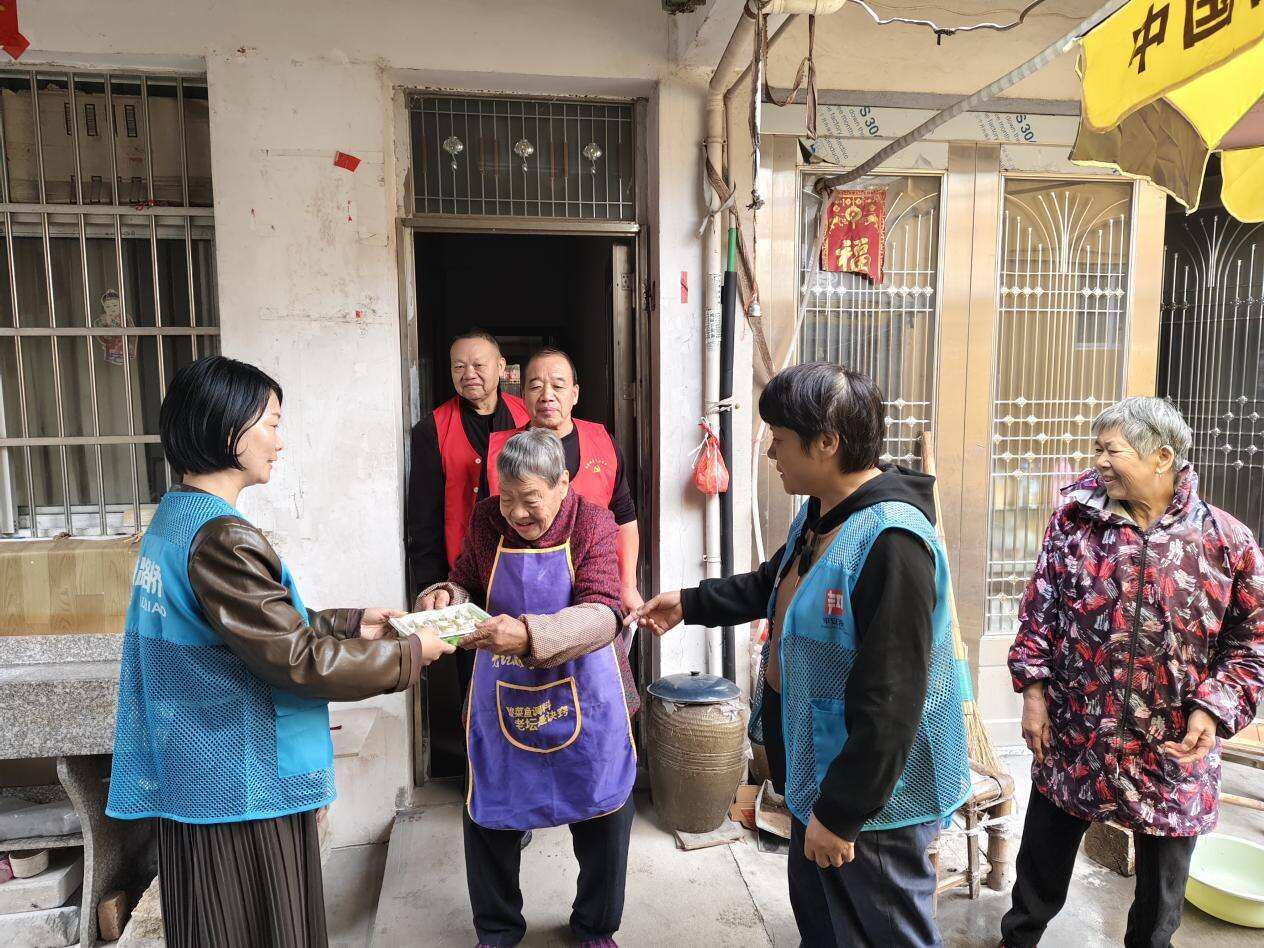 与此同时,下梁村文化礼堂内也热闹非凡,包饺子活动温馨启幕。网格员和志愿者分工协作,揉面、擀皮、调馅、包饺子的环节有条不紊地进行着。尽管包出的饺子“形态各异”,但每一个都裹满了心意,大家边包饺子边聊家常,时而分享自家长辈的生活趣事,时而交流照顾老人的小窍门,欢声笑语间,温暖氛围弥漫整个礼堂。饺子煮好分装后,网格员与志愿者组成“送暖小队”,分头前往辖区独居、空巢老人家中。每到一户,大家都细心询问老人身体状况与生活需求,检查水电安全,为辖区独居、空巢老人送上专属温暖。