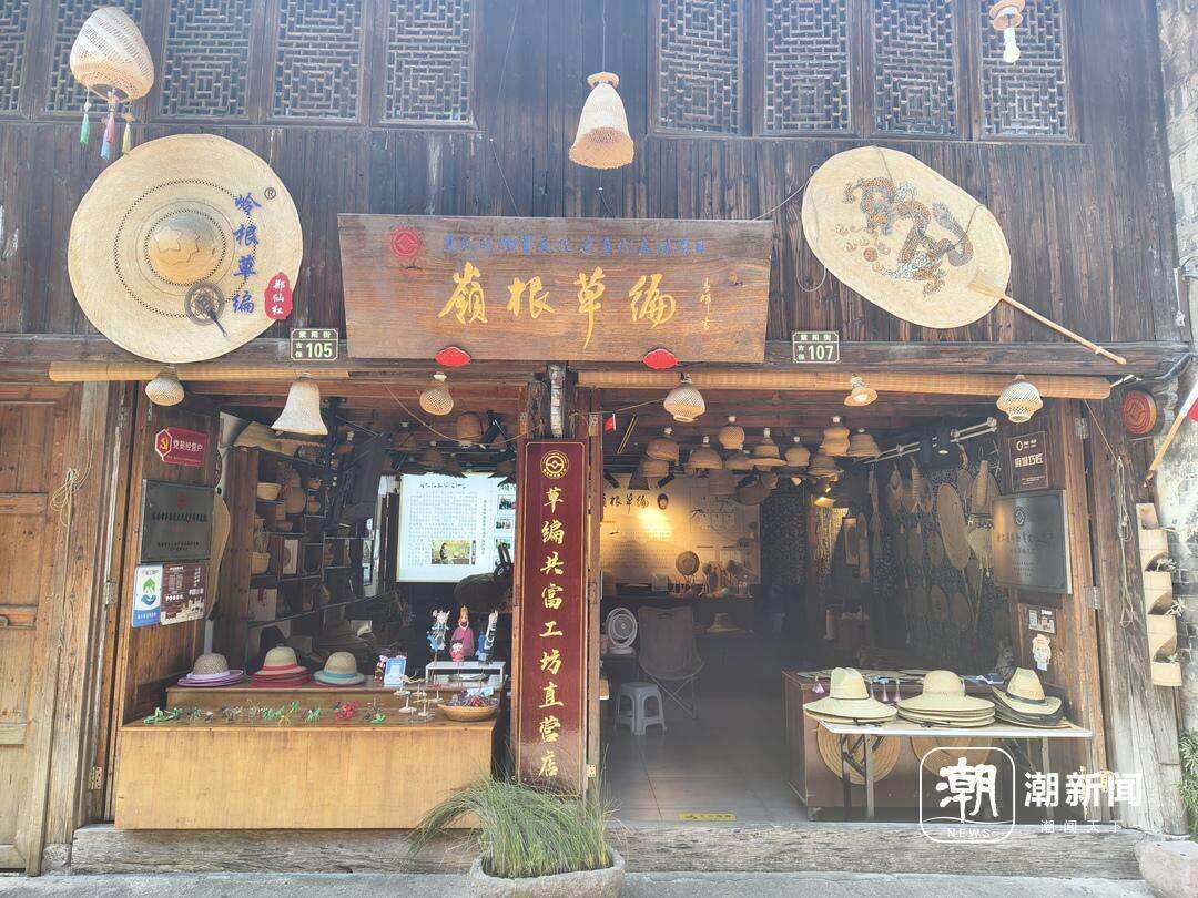 当清晨的曙光照在临海紫阳街107号的店面上,纯木的门板已经被店主郑仙红打开了,草帽、草扇、草编的小手办,沿街摆了起来——展示草编技艺的一天开启了。