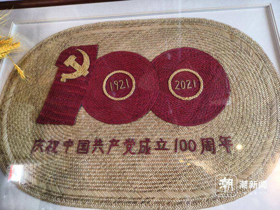 还有用灯芯草编出来的草龙,鳞片细节都很到位,连爪子的锋利劲儿都体现了出来。而在墙壁上,可以看到不少用草编制作出来的草画,用染色的草和本色的草纠缠交织,形成一幅幅生动的图画,里面不少作品都饱含浓浓的爱国元素。再抬头看天花板,店内的灯都配上了用草料编成的灯罩,美观大气,一种古色古香的味道。