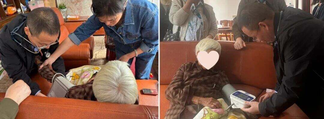 在回访中,医护人员检查发现阿婆近期血压偏高、偶有头晕,便立即联系她在外的子女,并协调社区家庭医生调整降压方案,针对阿婆头晕不适症状,做好格外的叮嘱。
