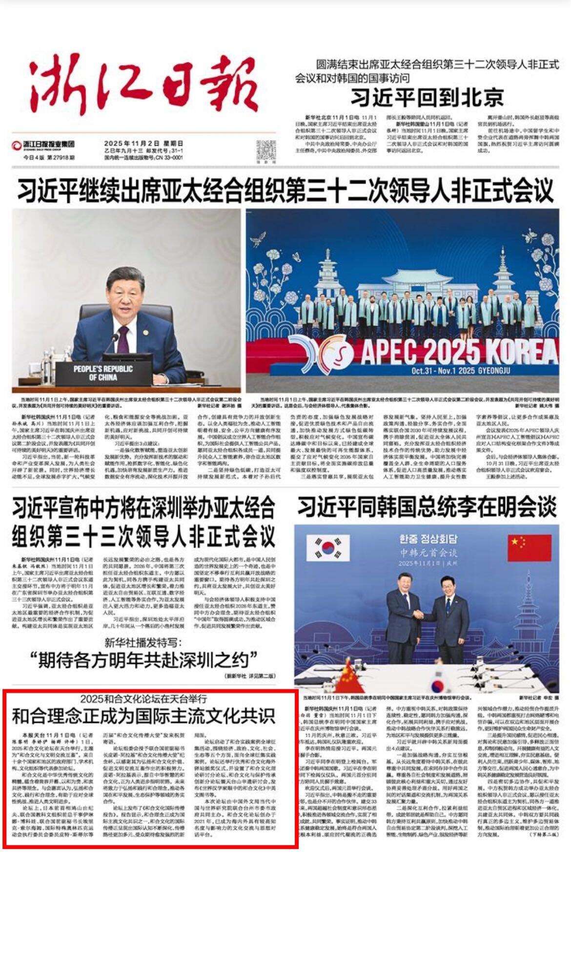 1日,2025和合文化论坛在台州举行,主题为“和合文化与文明交流互鉴”。来自十余个国家和地区的政府部门、学术机构、文化组织等代表参加论坛。