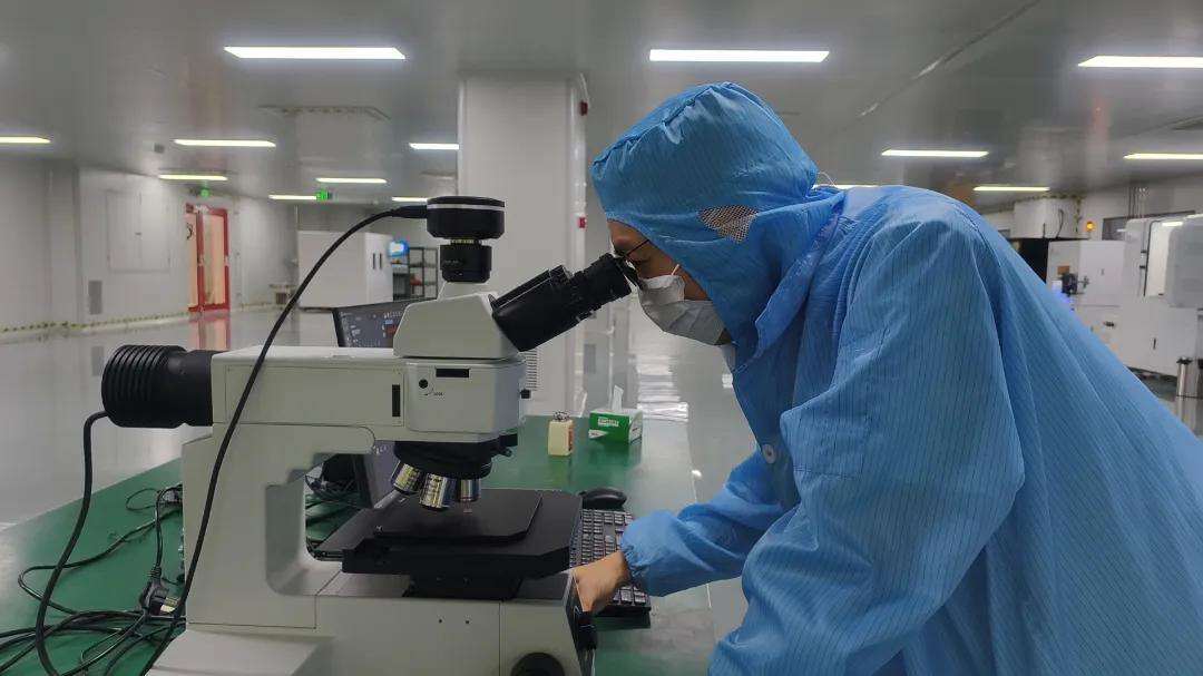 工作人员对刚生产的芯片进行质检