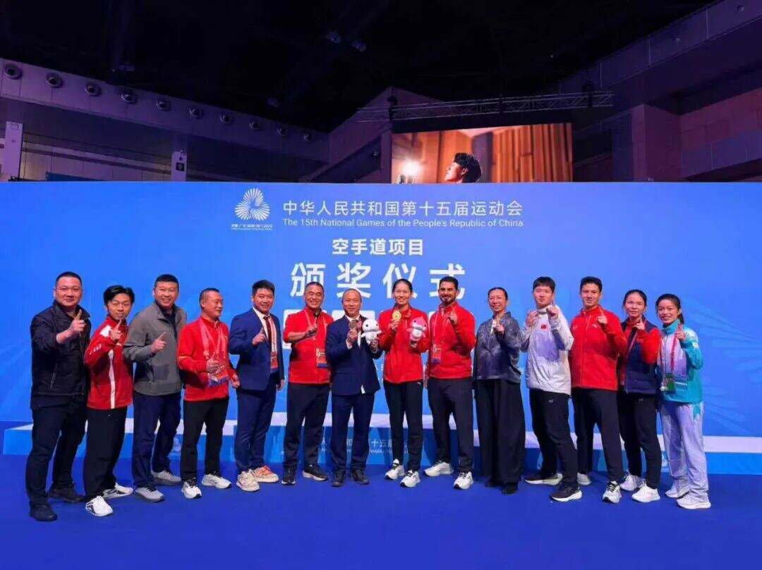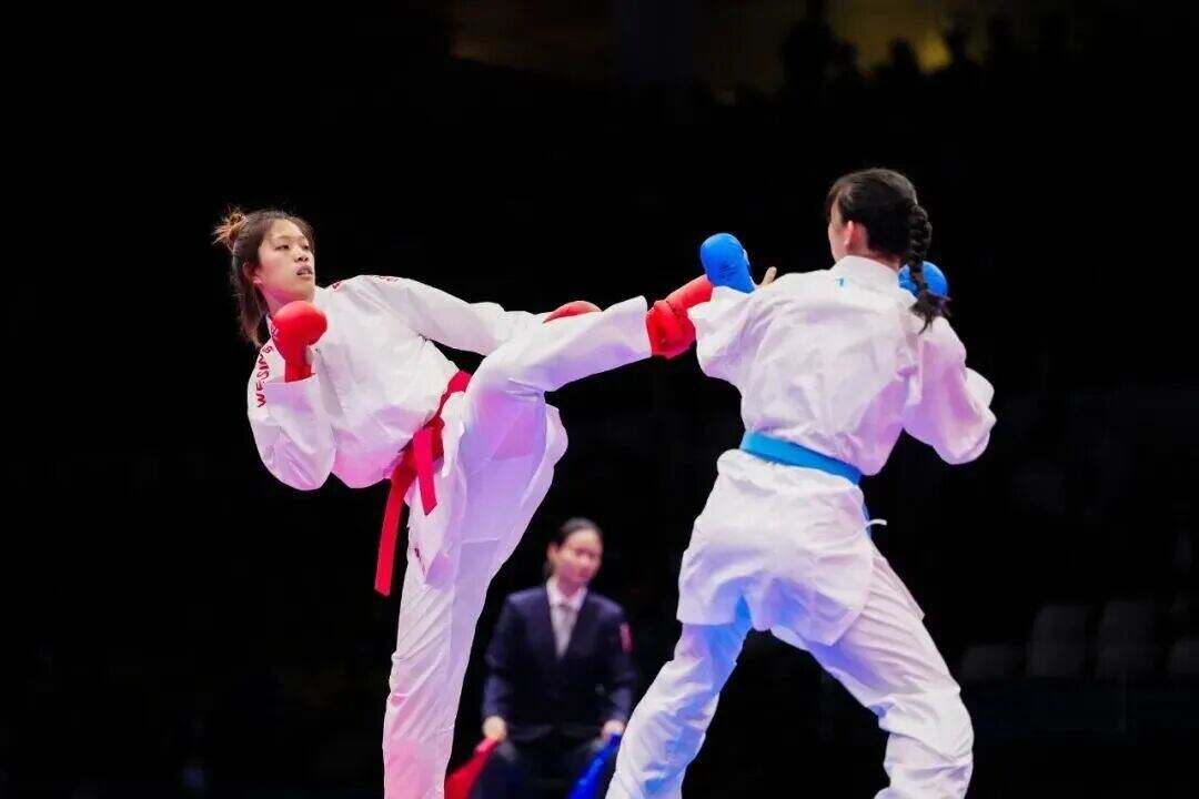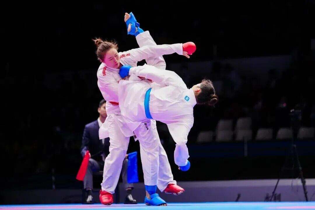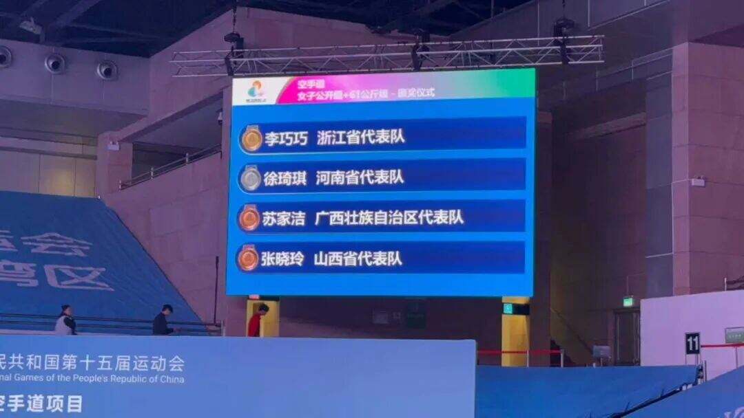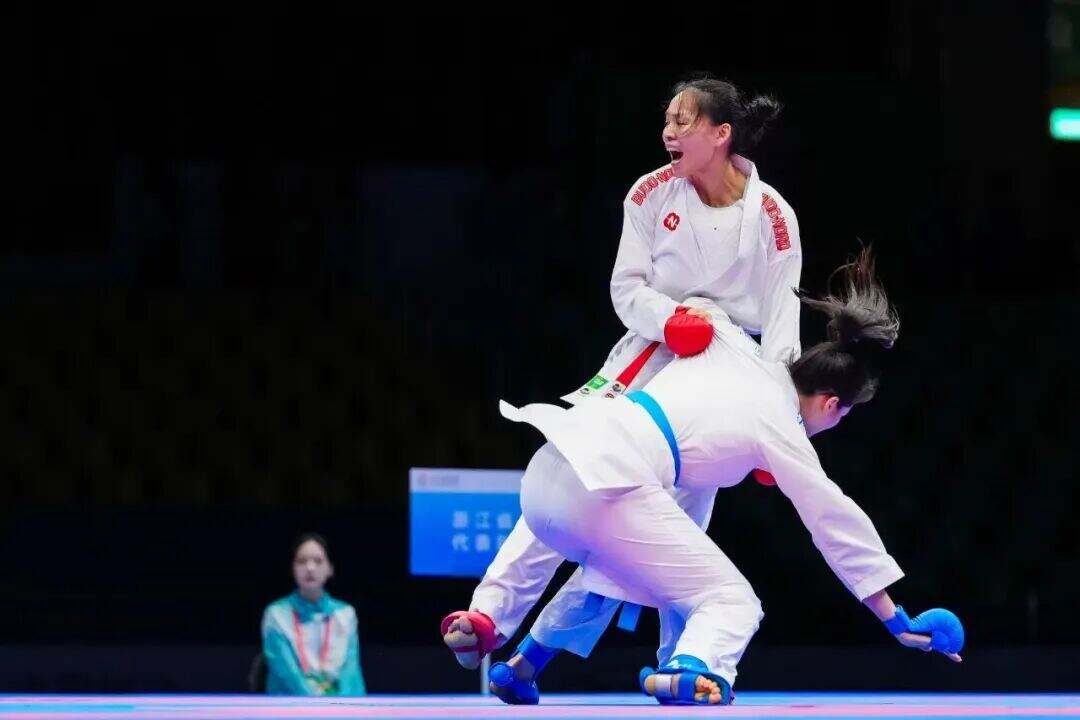 11月6日晚,在第十五届全运会空手道女子公开组+61公斤级决赛中浙江队选手李巧巧夺得冠军!