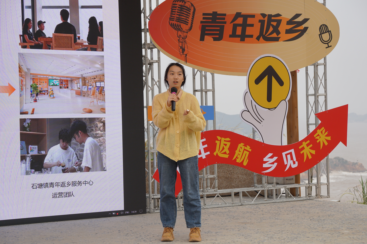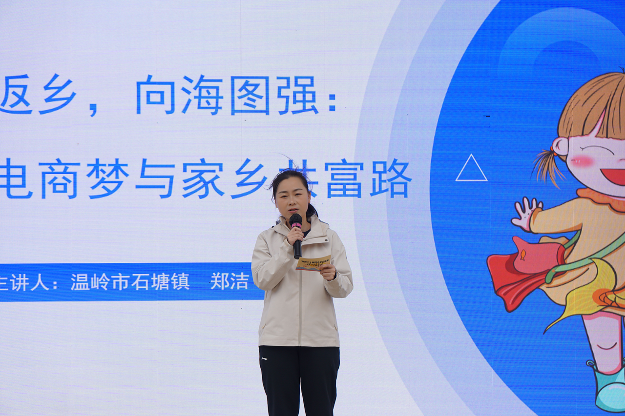 “靠海吃海,也要念好‘数字经’!”石塘镇“游来邮去的鱼”品牌负责人郑洁率先开讲,她带着全国电子商务大赛获奖的底气,分享了如何用数字化手段激活渔业致富密码,带动周边渔民将温岭海鲜销往全国的创业故事,让“电商共富”的理念深入人心。同为石塘青年的黄圣瞳则以《我们不只是回来,我们是扎根》为题,讲述了其通过小红书万粉账号“在逃T师傅”,以社交媒体运营赋能家乡美食文化传播的创新实践,展现了青年一代扎根乡土的坚定信念。