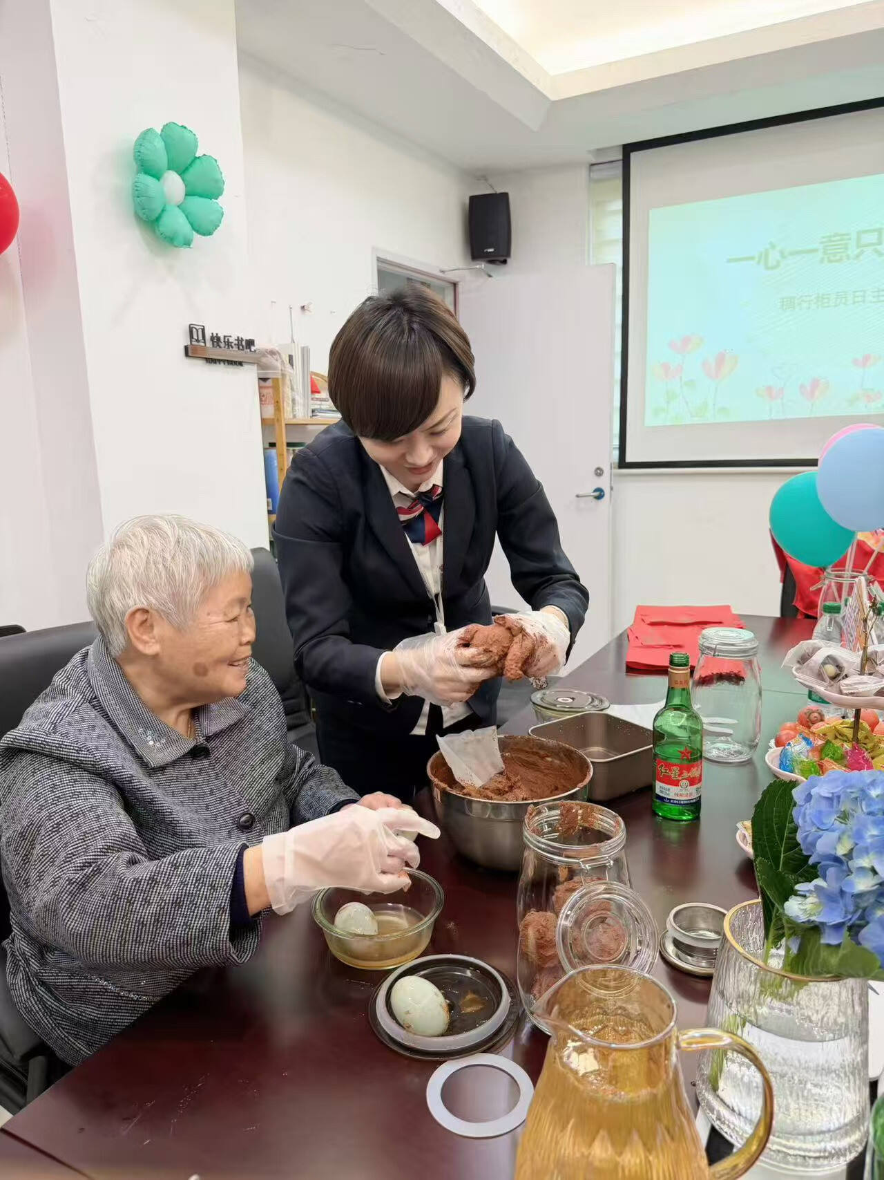 11月11日,平日里秩序井然的厅堂焕然一新,处处洋溢着欢声笑语。“投壶竞技”区,参与者屏气凝神、精准投掷,简单的动作间尽显专注,每一次成功都引来阵阵喝彩;“剥毛豆大赛”则充满生活烟火气,大家指尖翻飞、争分夺秒,现场氛围热烈而温馨。创意手工区更是人气爆棚,客户们在工作人员的指导下各展身手:亲手腌制咸鸭蛋,静待时光酝酿鲜香;精心制作艾草锤,为家人捎去健康问候;调配精油、凝固成型,独一无二的手工皂承载着巧思;甄选茶叶与干花,封装成专属DIY茶包,茶香中满含心意。最受孩童追捧的套圈游戏区,孩子们踊跃参与,每一次精准套中都伴随着雀跃欢呼,将活动气氛一次次推向高潮。