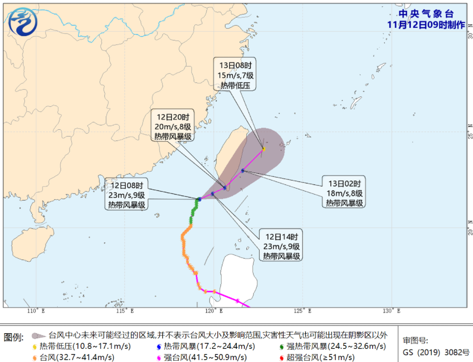 预计,“凤凰”将以每小时10~15公里的速度向东北方向移动,强度继续减弱,将于今天傍晚到夜间在台湾岛南部沿海登陆或擦过(热带风暴级,8~9级,20~23米/秒),尔后逐渐变性为温带气旋。
