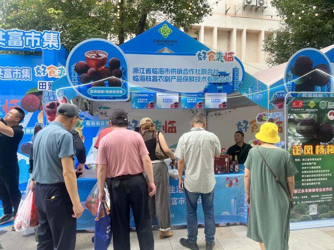 今年6月,临海市供销社联合上海市供销合作总社推出“好食来临”共富市集专场,成为上海夜生活节的“人气担当”。市集内,8家临海农业企业与20家各省合作社带来的好物琳琅满目,东魁杨梅、海苔饼、泡虾等特色产品被市民团团围住。