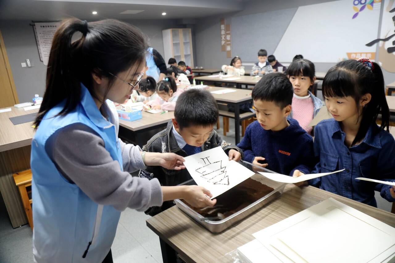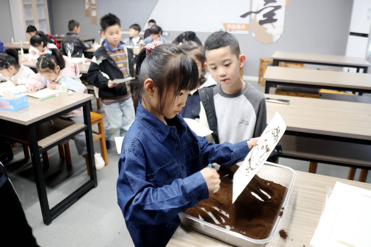 世界儿童日即将来临,11月13日,大溪镇方岩社区联合镇团委、妇联、社工办等单位,在镇党群服务中心三楼书画室开展“童心里的气象诗——咖啡渣创意沙画”主题活动。