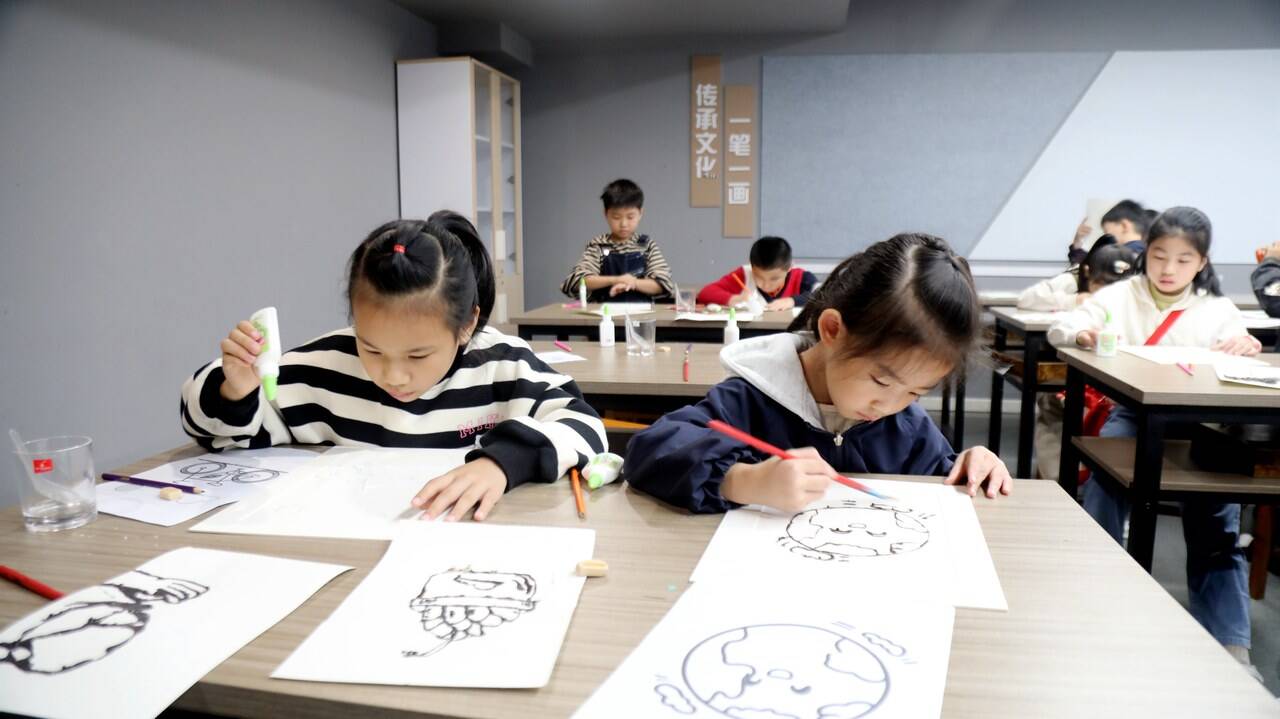 “我画的是大家一起种树,这样地球就会更绿。”刚完成作品的小朋友开心地分享道。一张张画作虽稚气未脱,却生动诠释了“敢作气候担当”的内涵。