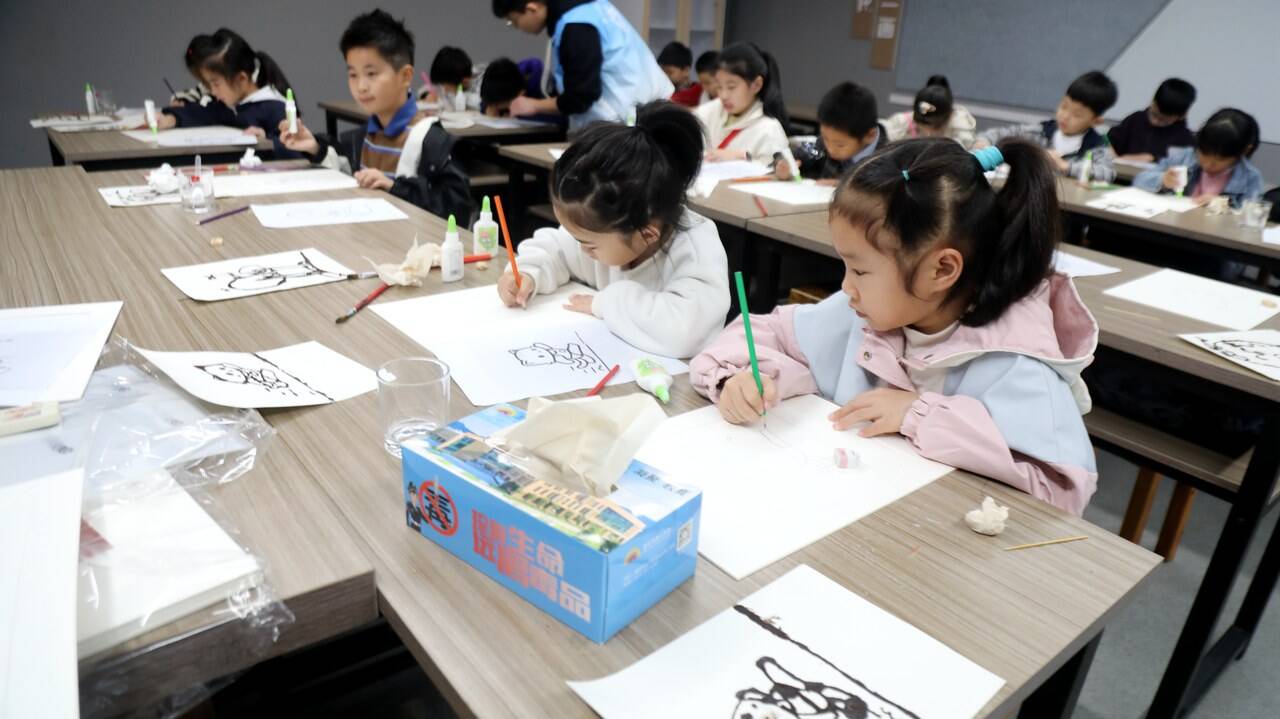 社区儿童欢聚一堂,化身“气候小卫士”,用平日里被丢弃的咖啡渣作原料,在画纸上勾勒出对绿色地球的美好憧憬。