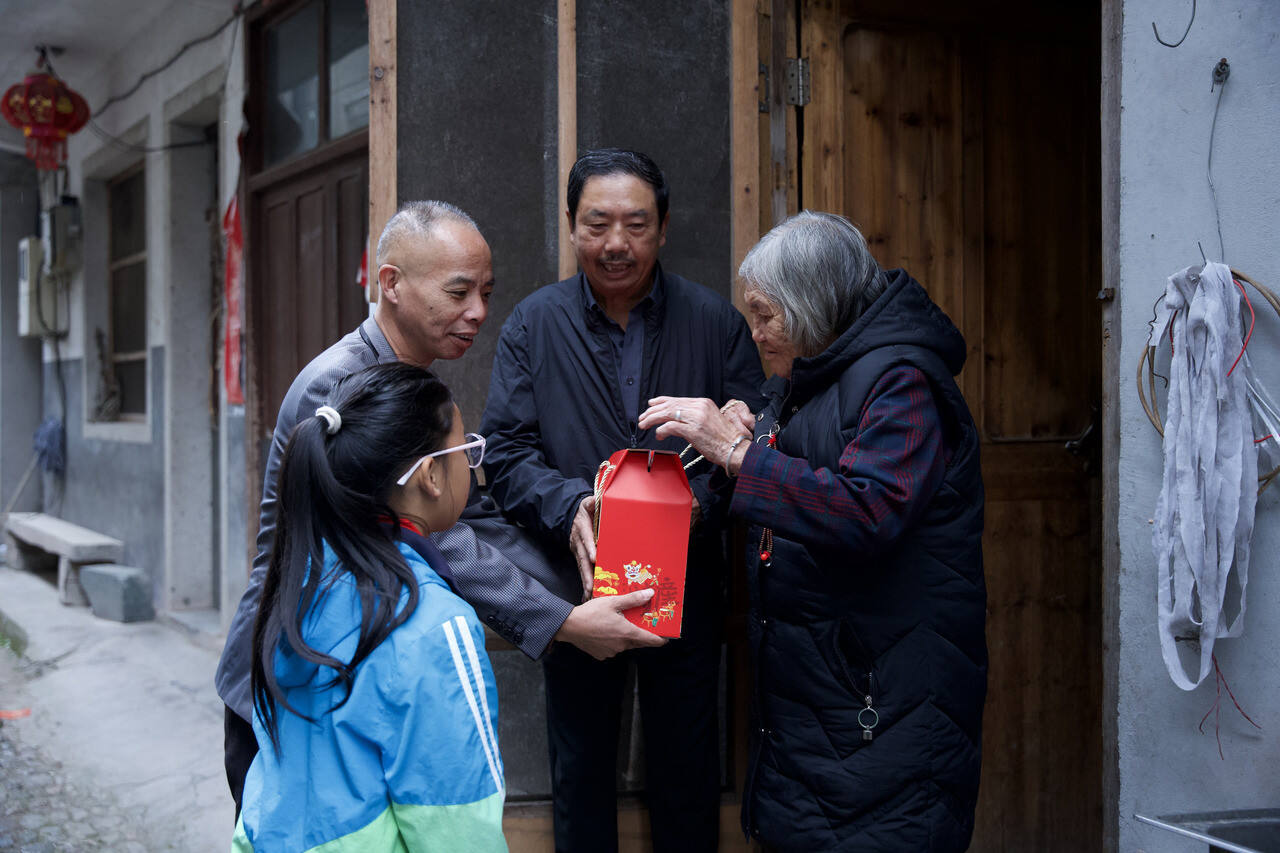 “祝爷爷身体健康!”在天台街头镇一户困难老人家中,镇中心小学的孩子们正围坐在老人身边,清脆的祝福声此起彼伏。近日,为弘扬中华民族尊老、敬老、爱老、助老的传统美德,街头镇组织办牵头,联合退休人员党支部、关工委共同开展“爱心敲门,银青同行”志愿服务,组织退休老干部与街头镇中心小学学生一同前往慰问困难老人家庭,用实际行动传递温情与关怀。
