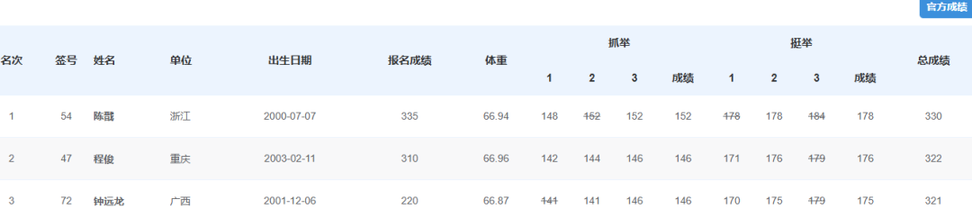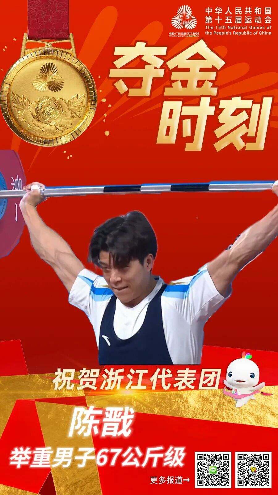 11月17日下午,十五运会举重男子67公斤级决赛举行,台州市三门运动员陈戬以抓举152公斤、挺举178公斤,总成绩330公斤位列第一,拿下浙江举重本届全运会首金!