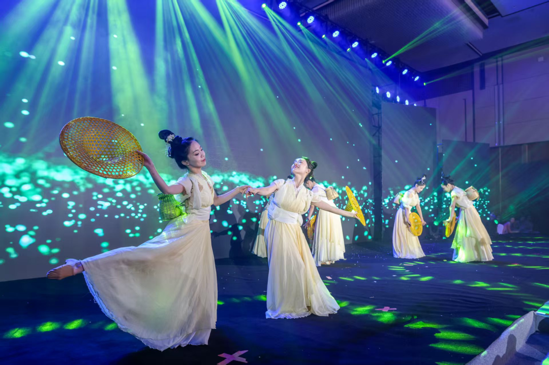 为了让远道而来的客人感受城市温度,17日的欢迎晚宴上,台州民乐团演奏《迎宾曲》,黄岩区文化馆云逸舞蹈团带来了舞蹈《采茶新韵》。黄岩文旅还设置了“黄岩十大新玩法”“黄岩有味”“黄岩有礼”等展陈,让国际游客在酒店内就能触摸这座城市的味道与风貌。