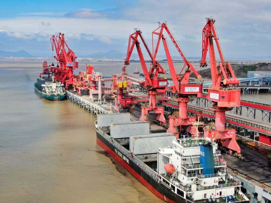 2021年11月,头门港区二期码头交工验收,新建2个5万吨兼靠7万吨级通用泊位;今年,2号3号泊位的靠泊能力由5万吨级提升至7万吨级,进一步增强货物吞吐能力;头门港区进港航道一期工程通过竣工验收;头门港区三期陆域先行工程启动建设……