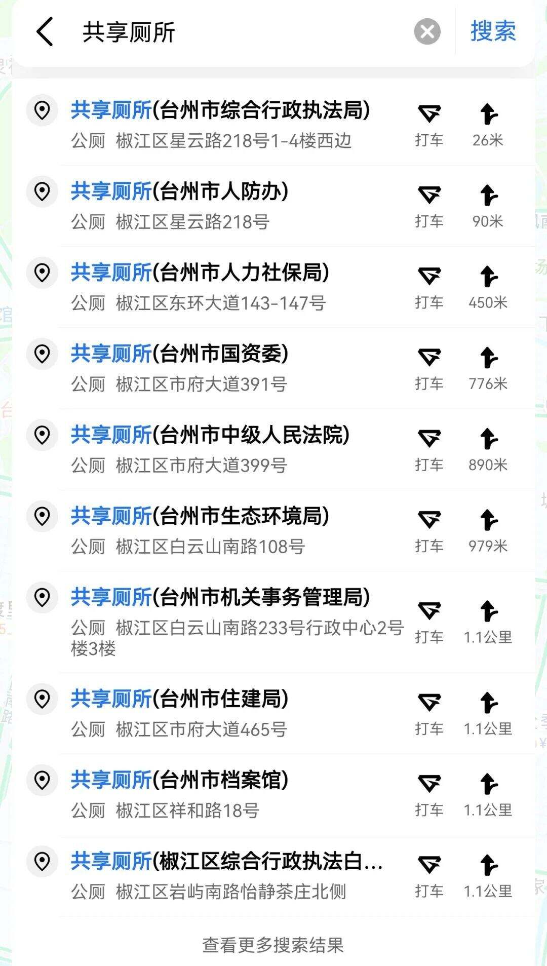 打开高德地图APP,搜索“共享厕所”或者点击“附近”找到“厕所”选项,即可查看周边已开放的内部厕所,轻松实现“一图寻厕、一键导航”。