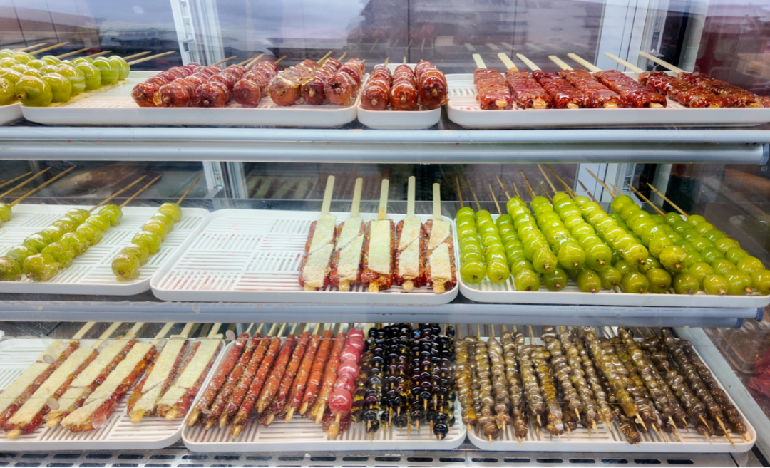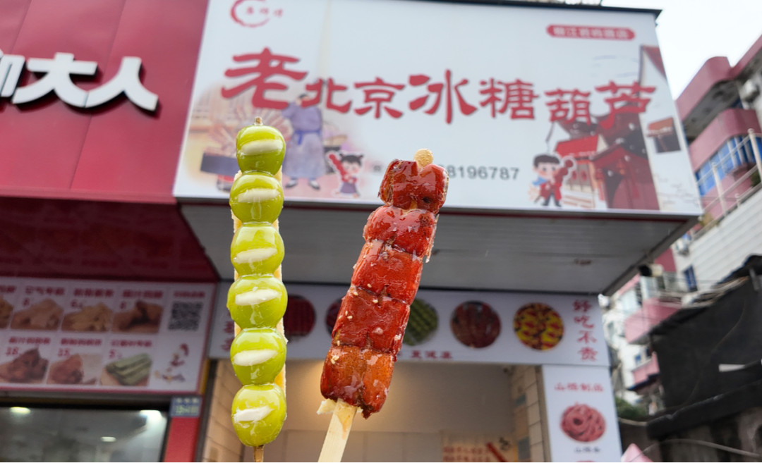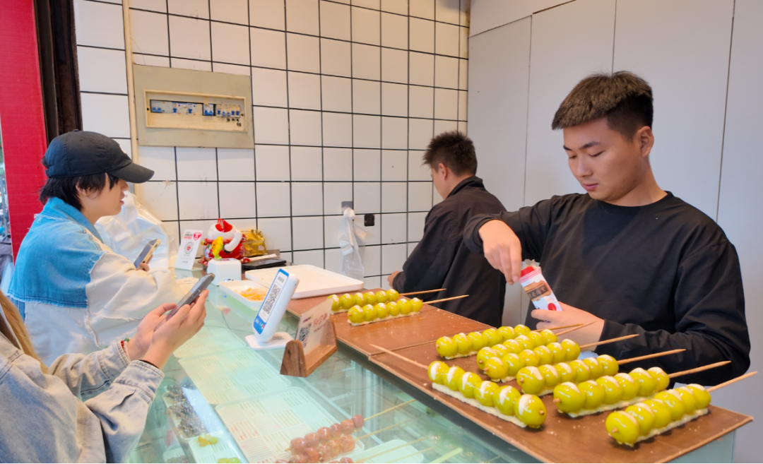 深谙网络传播之道的他,凭着这份巧思,让传统小吃成了椒江街头的 “顶流”。他还会认真接纳顾客反馈,“之前不少人说晴王款偏甜,我就赶紧研发了扁山楂奶皮子糖葫芦,口感更酸甜平衡。山楂都是从山东老家直运的,新鲜度有保障。 ”