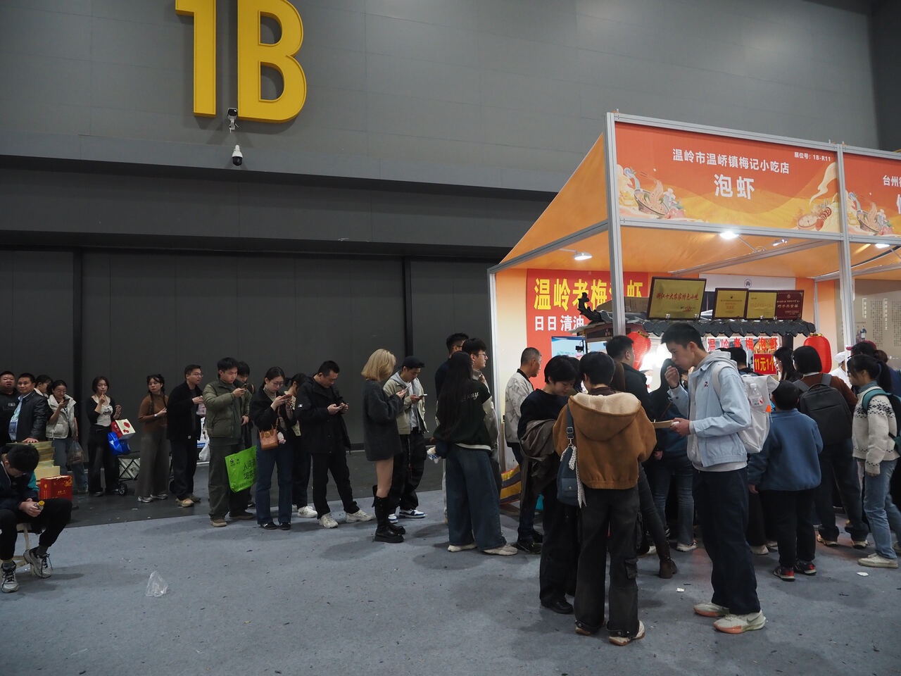 展会现场,台州不仅农产品受欢迎,地方特色小吃也火出圈。温岭市温峤镇梅记小吃店摊位前,等待购买泡虾的杭州市民排起长队。大量年轻顾客在品尝后,主动在小红书等社交平台上,发文推“。