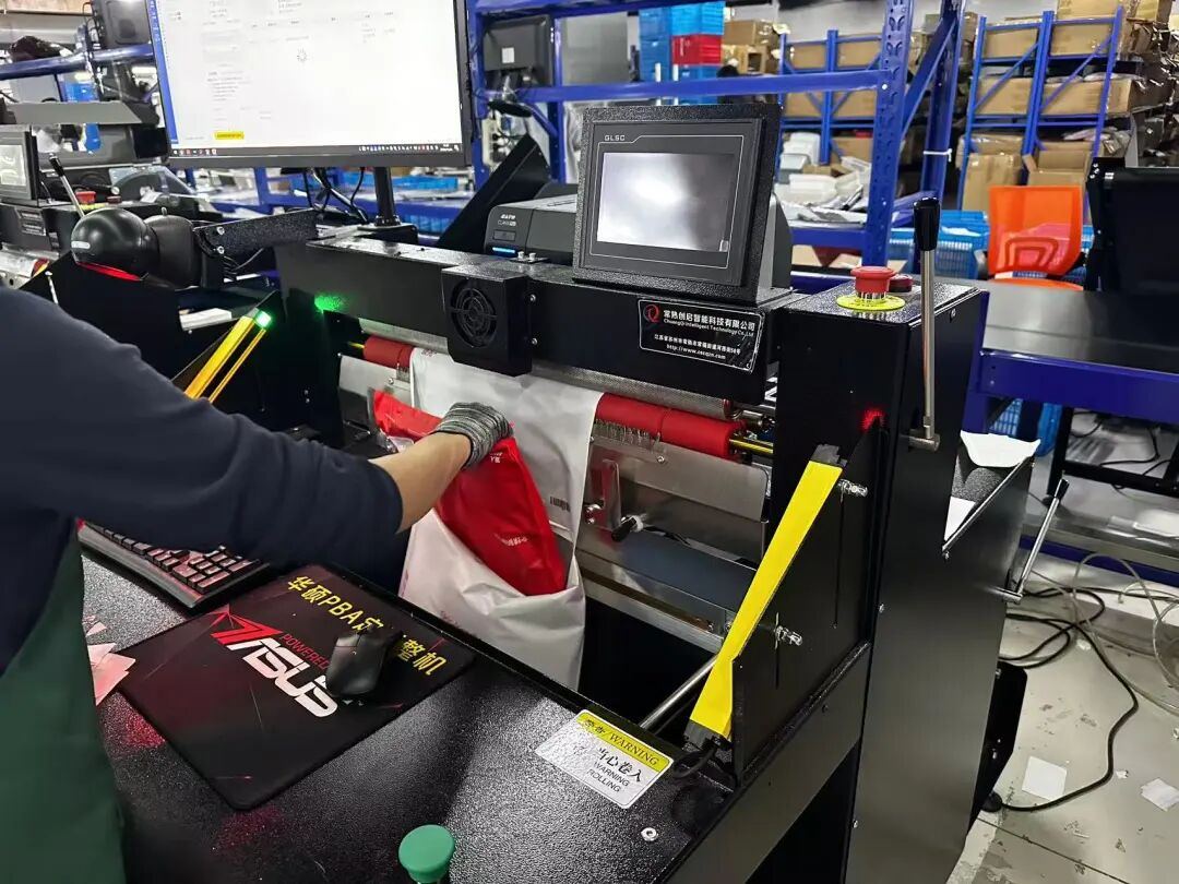 发货区内机器与手工打包区域划分明确,标准化的单件及小批量订单由自动打包机快速封装,复杂多件组合则交由人工处理。