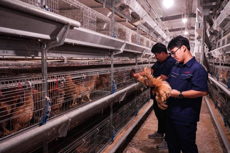 从人工喂养到智能养殖,郭枭帅的养殖场见证着仙居鸡养殖方式的革新。“以前10万羽鸡需要6个工人,背饲料、喂水等等,又累又脏;现在自动料线、自动饮水系统全覆盖,夏季有喷雾降温与冷风机,冬季鸡舍搭建保温层,3个人就能轻松打理。”他指着场内的室内外栖架介绍,这种创新设计既满足了鸡的栖息本能,又在避免公鸡打斗的同时,增加了鸡的活动量,让肉质更紧实。