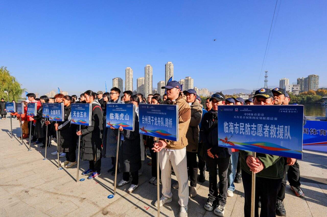 11月29日,冬日暖阳映照下的始丰溪波光粼粼,“中国体育彩票”天台县首届休闲皮划艇邀请赛在此开赛。来自各地的9支队伍、近100名选手齐聚始丰溪畔,以桨为刃、与浪角逐,上演了一场关于力量与激情的较量。