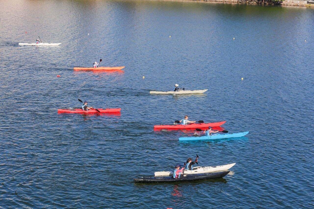 上午9时30分许,赛事正式拉开帷幕。双人200米休闲赛男子组率先登场,5条航道上的皮划艇整齐列阵、蓄势待发。