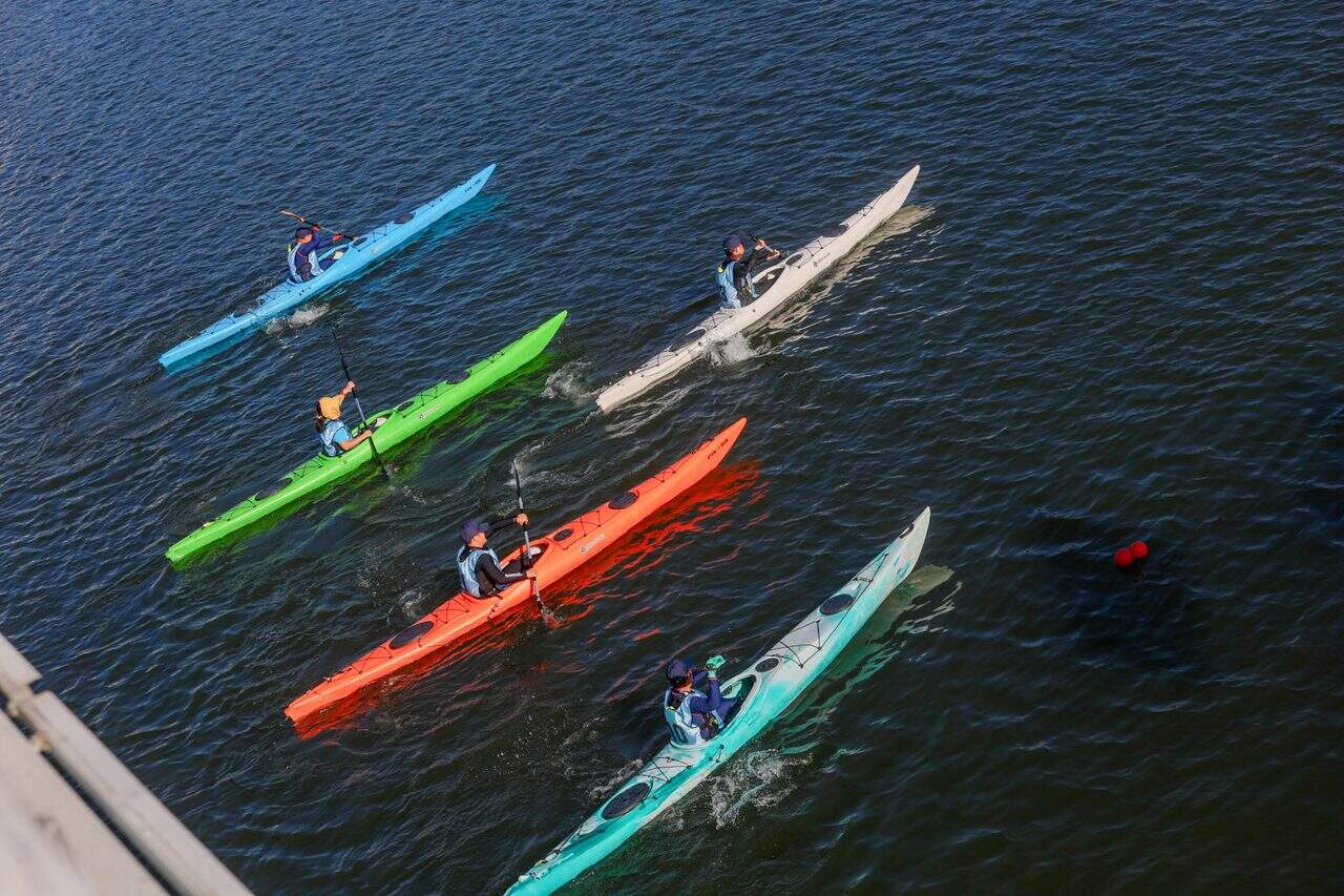 午后,单人2000米竞速赛接续开赛。选手们通过抽签确定出发顺序,按照赛事规则沿逆时针方向绕标前行。比赛中,外航道选手主动放慢节奏,为里航道选手预留出充足的绕标空间,尽显良好竞技风范。