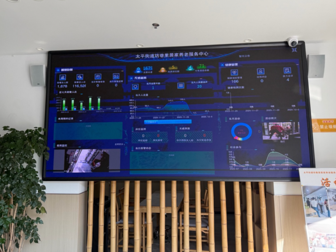 与此同时,食品安全也在科技助力下实现全程可溯、透明可控。卖鱼桥社区食堂对面的坊巷里居家养老服务中心内,大屏幕实时展示着“阳光厨房”的运作实景。借助AI智能分析、智能晨检、留样消毒监控等数字化手段,温岭构建起完整的食品安全风险智能防控体系,实现从食材到餐品的全流程透明监管,牢牢守护老年人“舌尖上的安全”。