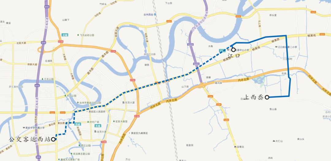 1.首末站由“台州客运西站—上西岙”变更为“江口街道办事处—上西岙”。