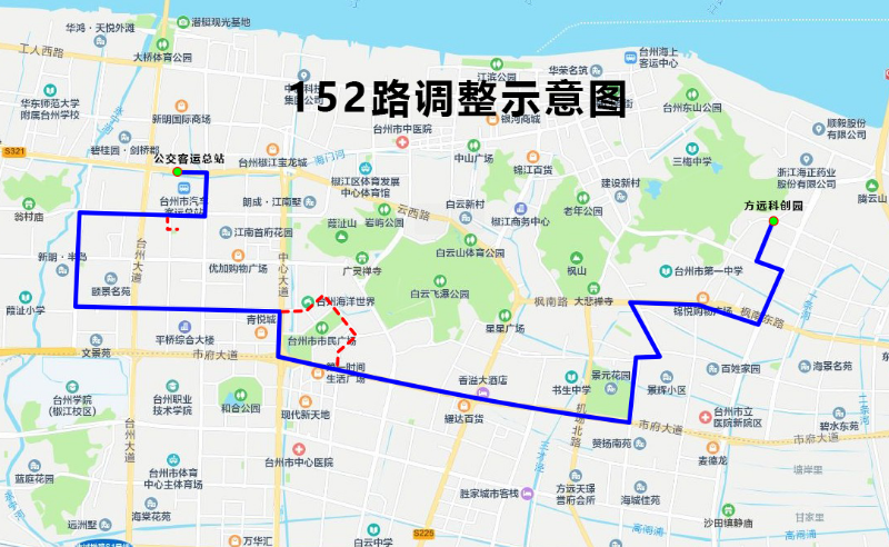2.线路走向:台州湾大道、渔舟路、东海大道、聚海大道、开发大道、高新路、体育场路、安康路。