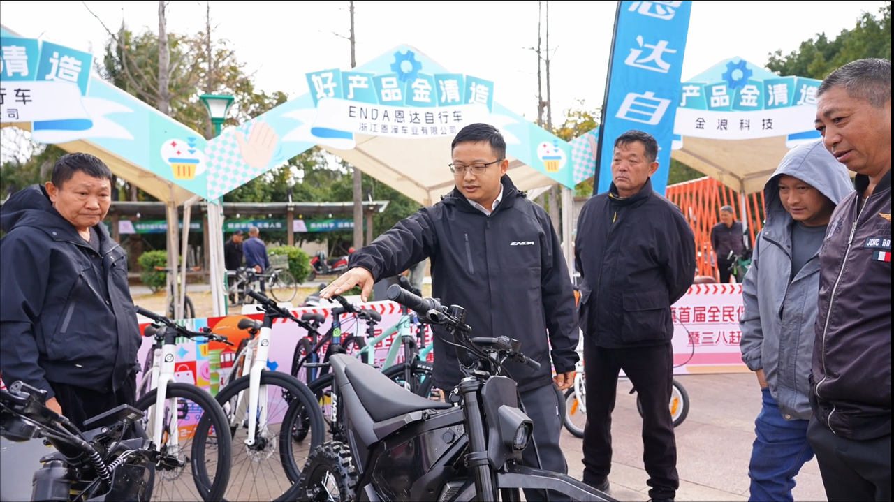 活动中,路桥恩泽车业有限公司带来了十多款山地车、越野电摩车等产品,主打“大健康”消费理念。