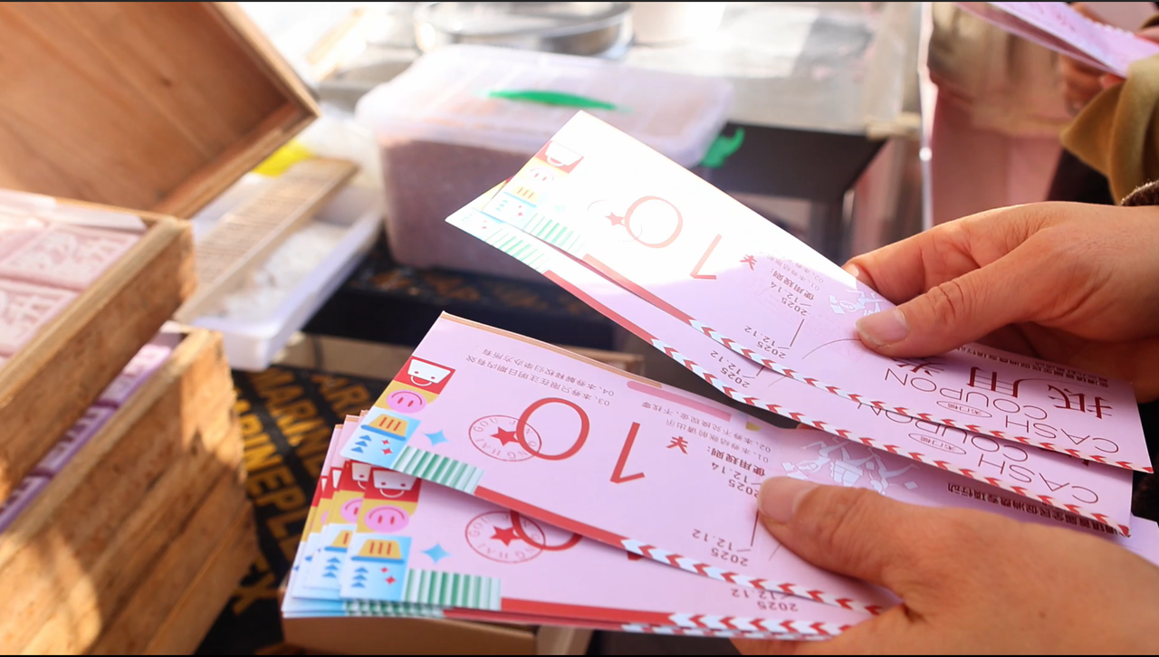 在为期三天的集市活动中,主办方共提供了2400张消费券,市民们可以通过转发朋友圈等方式获取,现场的所有商户均可使用。