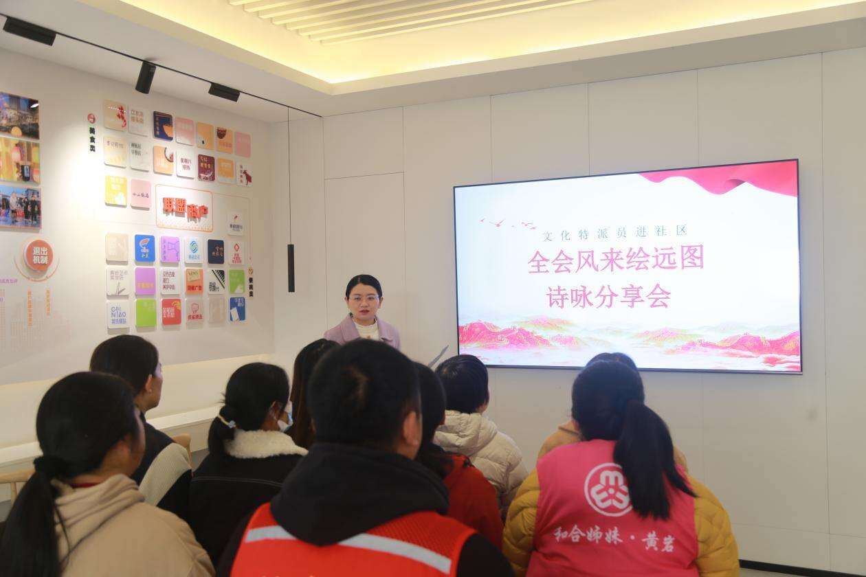 近日,驻东城街道文化特派员牟茜茜黄岩海棠社区,牵头举办“全会风来绘远图 诗咏分享会”主题文化活动。此次活动以诗歌为传播载体,将党的二十届四中全会精神解读与民生关怀紧密结合,吸引社区居民、退役军人等群众参与,在朗朗诗声中推动政策理论走进基层、浸润民心。